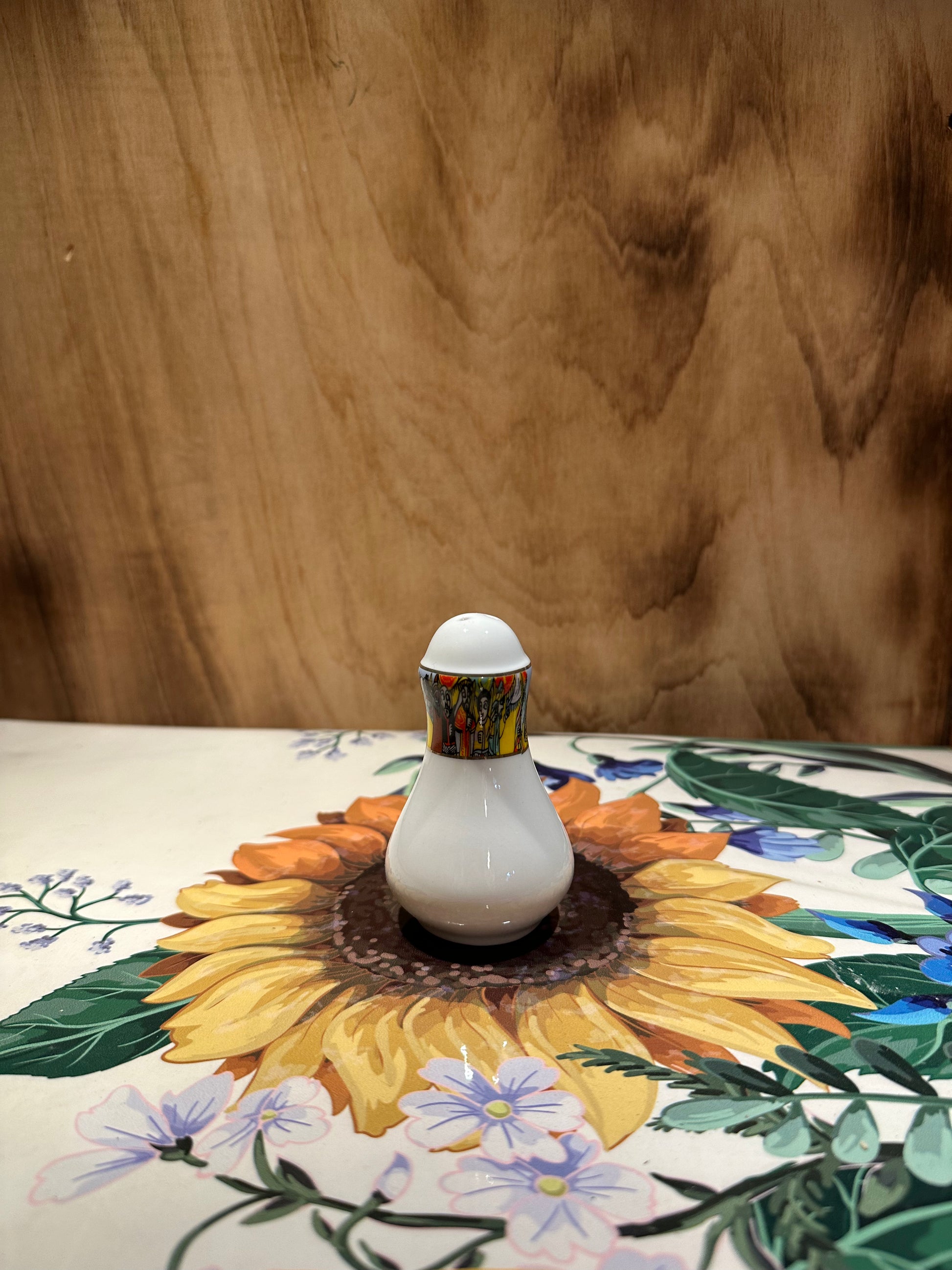 This Ethiopian art salt holder showcases traditional craftsmanship with intricate designs that reflect the rich cultural heritage of Ethiopia. Expertly crafted, it serves as both a functional kitchen accessory and a decorative piece, adding an authentic touch to your dining experience. Its unique artistry makes it a distinctive addition to any collection or table setting.