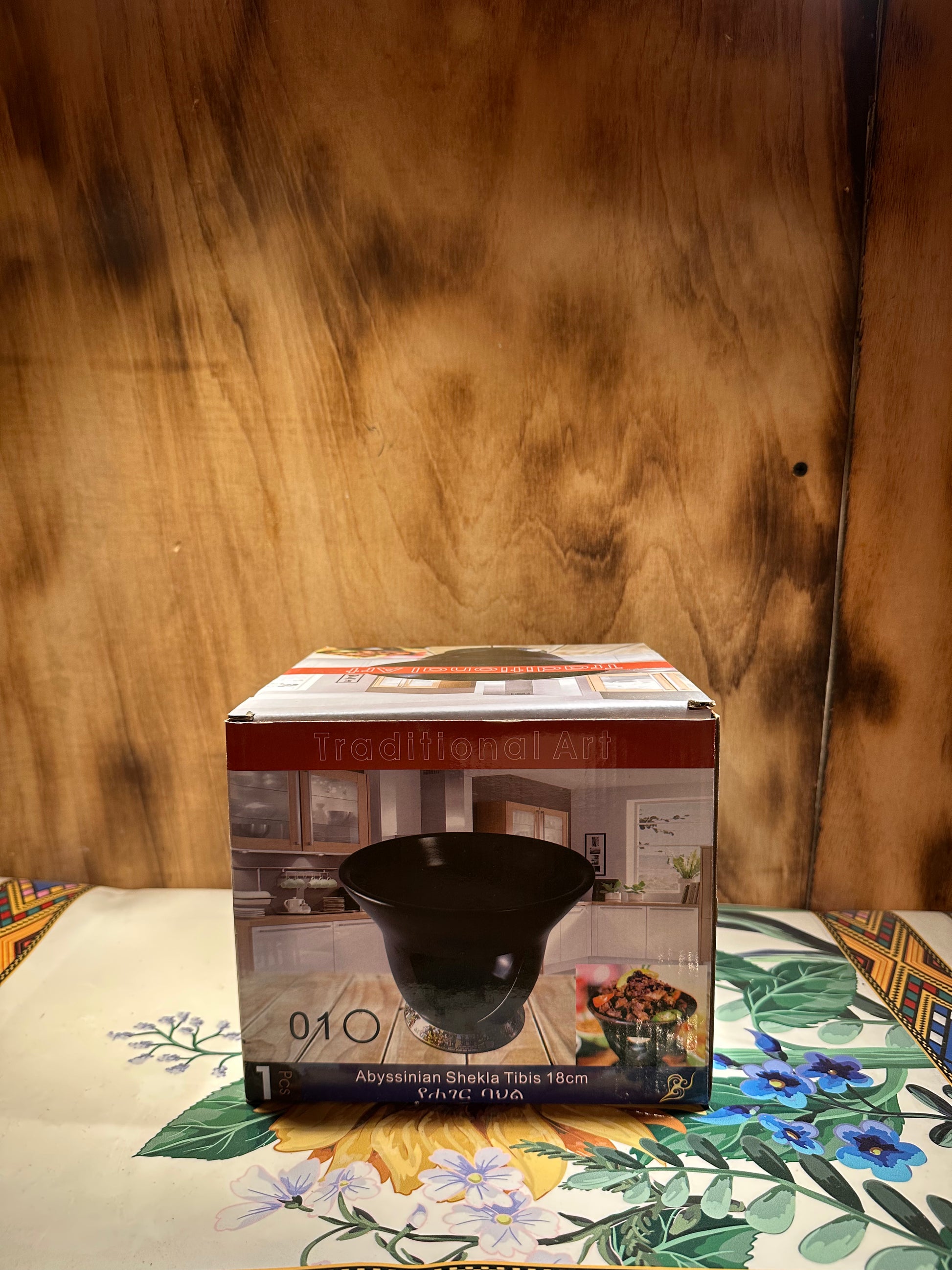 The Ethiopian ceramic shekela tebs, with an 18 cm diameter, exemplifies traditional artistry crafted from robust ceramic. Its proportions and style are well-suited for genuine cultural presentations or everyday functionality, offering a balance of visual charm and lasting durability. Ideal for enthusiasts and collectors of Ethiopian heritage.